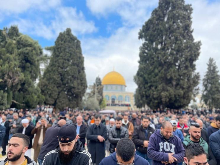 وتوافد المصلون من محافظات الضفة وأراضي عام 1948، والبلدات المحيطة بالقدس المحتلة، إلى المسجد الأقصى.