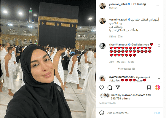 نشرت الفنانة المصرية ياسمين صبري صورة لها أثناء أدائها مناسك العمرة في المملكة العربية السعودية.