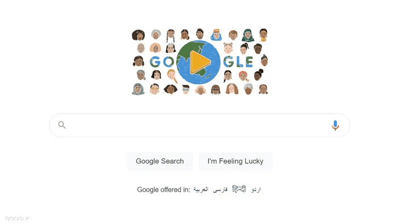 وزينت الصفحة الرئيسية لـ"غوغل" مجموعة من الرسوم التي تمثل طيفا من النساء من شتى أرجاء العالم، تتوسطها الكرة الأرضية.
