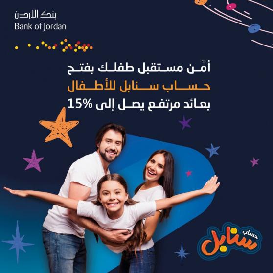 أطلق بنك الأردن برنامجا جديدا لودائع التوفير للأطفال، تحت اسم"حساب سنابل للأطفال"،بمزايا ومكافآت متعددة وعوائد مرتفعة تساعد الأهل على تأمين مستقبل أطفالهم.