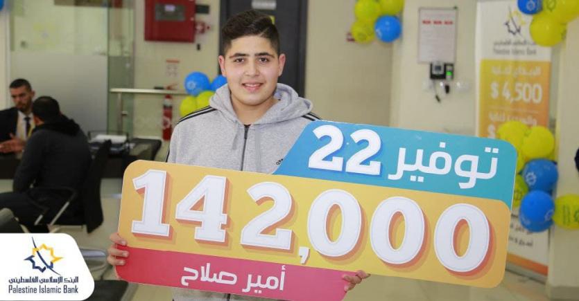 سلم البنك الإسلامي الفلسطيني الجائزة النقدية الثانية لحملة حسابات التوفير "توفير 22" وقيمتها 142,000 شيكل للفائز أمير صلاح من محافظة أريحا.