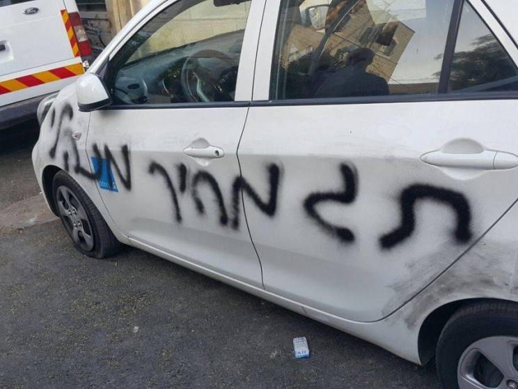 نابلس: مستوطنون يعطبون إطارات 15 مركبة ويخطون شعارات عنصرية