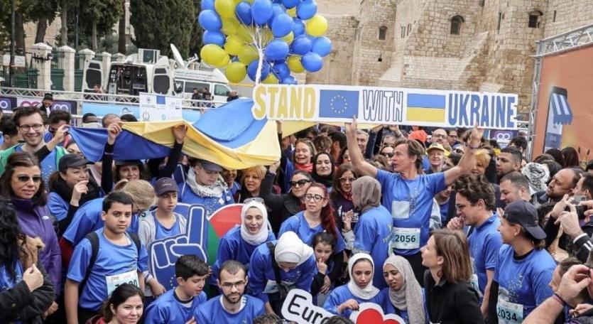 وقال الائتلاف في بيان صحفي، السبت، "خرج علينا بالأمس ممثل الاتحاد الأوروبي في فلسطين، يحمل لافتة تضامن مع أوكرانيا خلال ماراثون الحرية الذي نفذ أمس الجمعة في مدينة بيت لحم تحت شعار أساسي يطالب بحرية الشعب الفلسطيني بالحركة.