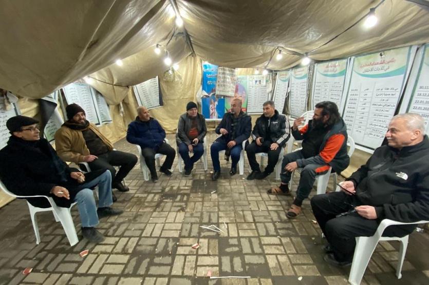 واصل ذوو الشهداء والأسرى وأسرى محررون وفعاليات من جنين ومخيمها، مساء اليوم السبت، وقفاتهم داخل الخيمة المنصوبة بميدان عميد الأسرى كريم يونس وسط المدينة، للمطالبة باسترداد جثامين الشهداء المحتجزة لدى سلطات الاحتلال الإسرائيلي، ودعمًا وإسنادًا للأسرى.