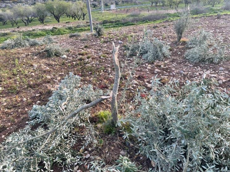 مستوطنون يقطعون 170 شجرة زيتون في اللبن الشرقية جنوب نابلس