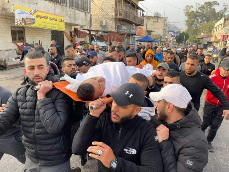 وانطلقت مسيرة جماهيرية من أمام مستشفى الرازي إلى مستشفى جنين الحكومي، ورفع جثمان الشهيد على الأكتاف، وسط ترديد الهتافات الوطنية المنددة بجرائم الاحتلال، والمطالبة بتوفير الحماية الدولية لشعبنا.