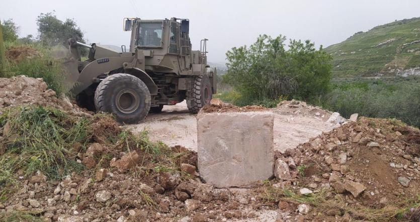 نابلس: الاحتلال يغلق مدخل منطقة المسعودية بالسواتر الترابية