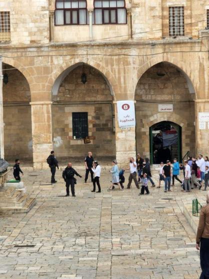 واقتحم المستوطنون المسجد الأقصى من جهة باب المغاربة، على شكل مجموعات ونفذوا جولات استفزازية، وأدوا طقوسا تلمودية في ساحاته، تحت حماية مشددة من شرطة الاحتلال.