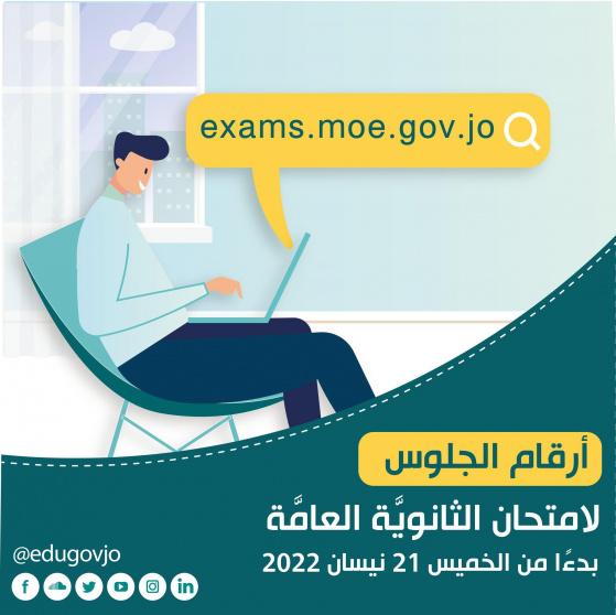 رابط أرقام الجلوس للثانوية العامة التوجيهي في الأردن 2022 الذي أعلنت عنه وزارة التربية والتعليم الأردنية عبر موقعها الإلكتروني (exams. moe. gov. jo) للاستعلام عن الرقم الخاص.