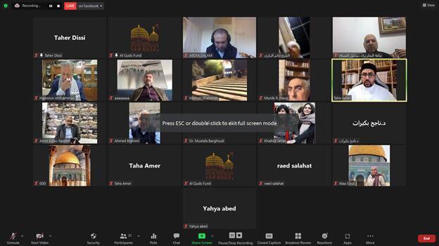 نظمت مؤسسة أوروبيون من اجل القدس وحملة الوفاء للقدس يوم تضامني مع القدس واهلها دعما لصمودهم والتبرع للحملة عبر التقنية المرئية بمشاركة شخصيات إسلامية وعربية من القدس وأوروبا والمغرب العربي.