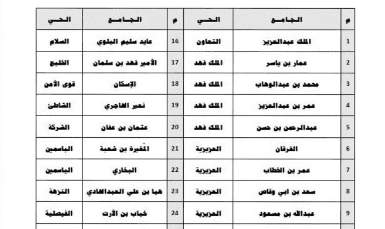 وفي حي اللؤلؤة تتم صلاة العيد في جامع عثمان بن العاص، وفي الحمراء بجامع حذيفة بن اليمان، وفي الجوهرة بجامع أبي بن كعب، وفي الريان بجامع نافع بن عتبة. بحسب ما ورد في البيان.