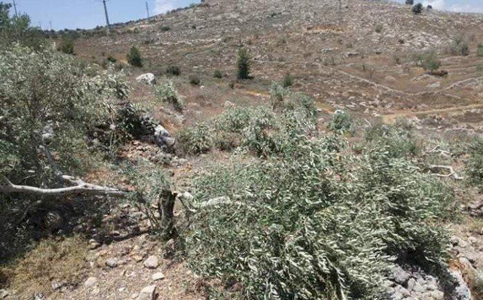 مستوطنون يقطعون 20 شجرة زيتون ويتلفون محاصيل زراعية في مسافر يطا