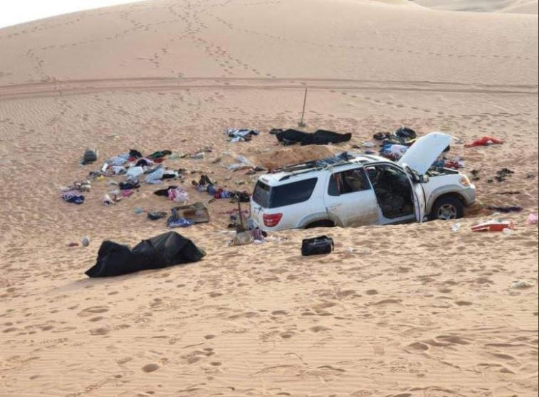 وتحدث موثق الفيديو عن تفاصيل محزنة عن مأساتهم قبل وفاته، موضحاً بأن سيارتهم علقت بالرمال، بعد أن تاهوا في الصحراء، ولم يستطيعوا إخراجها لأكثر من 3 أيام.