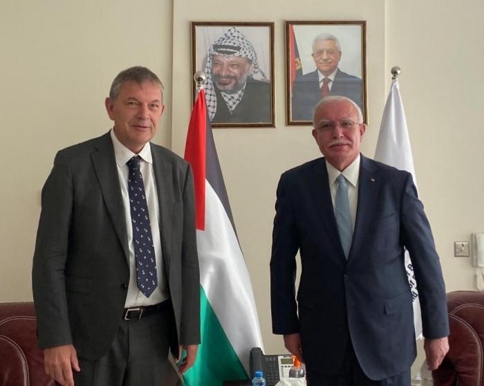 التقى وزير الخارجية والمغتربين رياض المالكي، اليوم الثلاثاء، في مقر الوزارة بمدينة رام الله، المفوض العام لوكالة الأمم المتحدة لغوث وتشغيل اللاجئين الفلسطينيين في الشرق الأدنى (الأونروا)، فيليب لازاريني، بحضور القائمة بأعمال مديرة عمليات الوكالة بالضفة الغربية سينديكتا نكومراه.