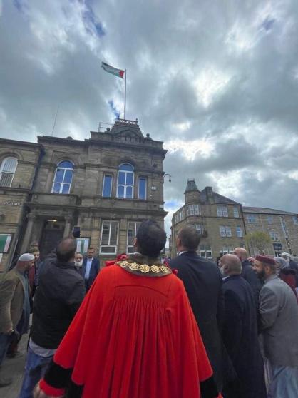 رفع العلم الفلسطيني على مقر بلدية بيندل البريطانية