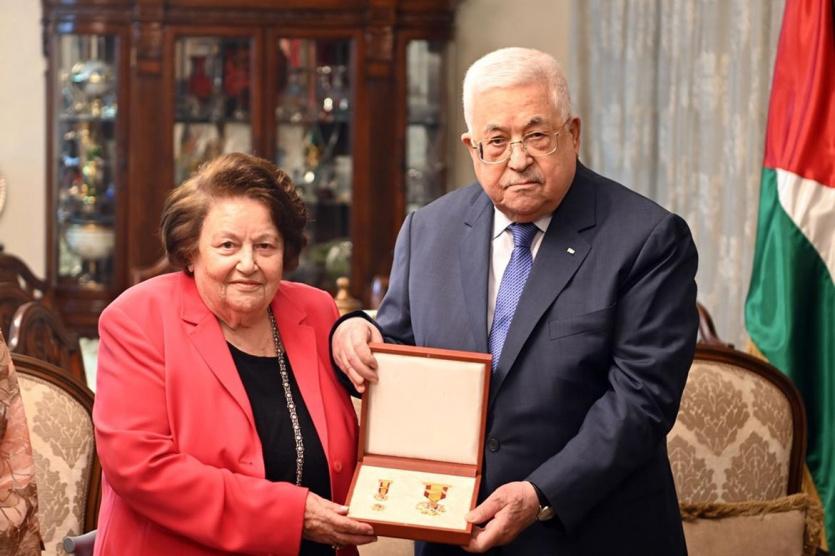 الرئيس عباس يمنح وداد قعوار ميدالية الإنجاز