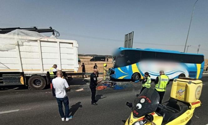 أصيب أربعة أشخاص بجروح متفاوتة، حالة أحدهم خطيرة، في حادث طرق وقع بين حافلة ركاب وشاحنة بالقرب من قرية اللقية، في منطقة النقب، جنوبي البلاد، بعد ظهر اليوم الأحد.