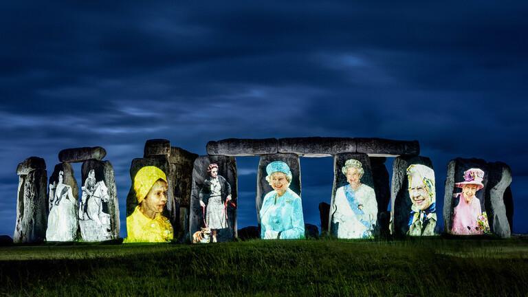 بمناسبة اليوبيل البلاتيني للملكة اليزابيث الثانية، عرضت صور من كل عقد من حكمها على أحجار ستونهنج، التي بنيت من قبل البريطانيين القدماء حوالي عام 2500 قبل الميلاد.