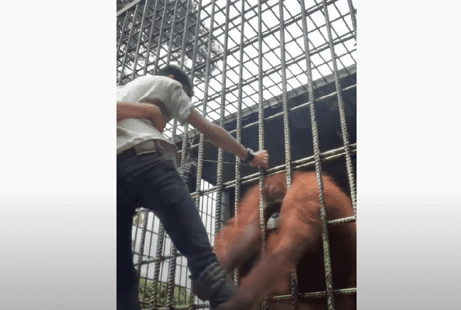 تداولت حسابات مواقع التواصل الاجتماعي مقطع فيديو يظهر تصرفا مثيرا قام به إنسان الغاب في حديقة حيوان إندونيسية أثناء تواجد الزوار أمام قفصها.