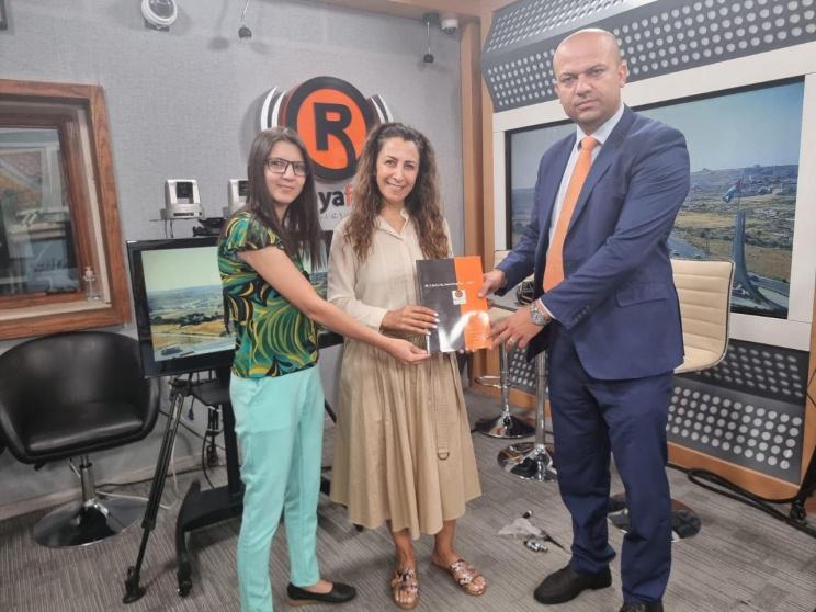 وجرى خلال اللقاء في مقر إذاعة "راية اف ام"، تسليم الخطة التسويقية للمدير العام لشركة "راية" للإعلام والنشر "هبة الوزني"، بحضور الدكتورة اسراء عقل والدكتور يوسف حسين.