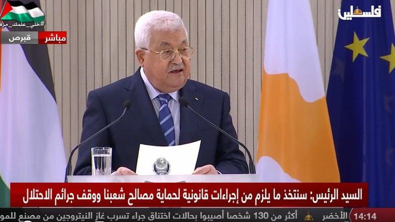 وأضاف خلال مؤتمر صحفي مع رئيس قبرص نيكوس أنستاسياديس، اليوم الثلاثاء، في القصر الرئاسي بمدينة لارنكا، إن الوضع الحالي لا يمكن السكوت عليه أو تحمله، في ظل غياب الأفق السياسي، والحماية الدولية لشعبنا الفلسطيني، وأننا سنواصل إجراء الاتصالات من أجل حشد الدعم الدولي لمواجهة هذه التحديات الخطيرة واتخاذ إجراءات رادعة وعدم الكيل بمكيالين، وسنضطر أن نتخذ ما يلزم من إجراءات قانونية، تحمي مصالح شعبنا، من أجل وضع حد لجرائم الاحتلال التي وصلت لحد لا يمكن قبوله.