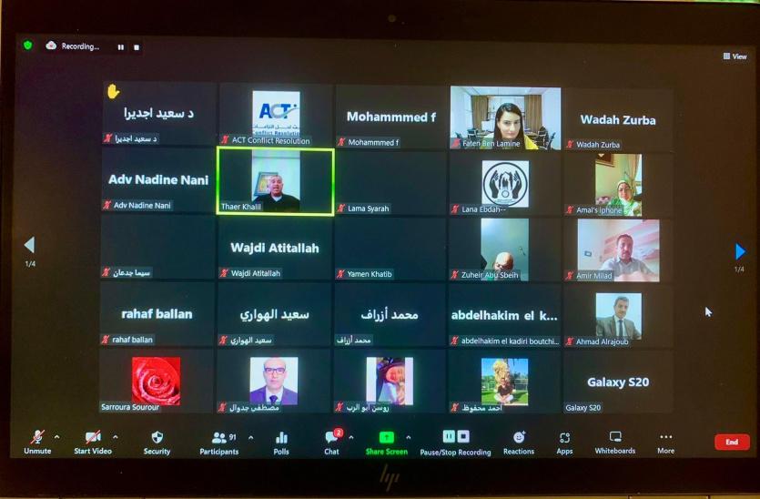 استضاف منتدى الوساطة لمؤسسة ACT لحل النزاعات يوم الاثنين الموافق 27-6-2022 في لقائه الافتراضي السادس الاستاذ ثائر خليل رئيس نيابة الاحداث في ندوة بعنوان "الوساطة الجزائية: تجربة النيابة العامة في فلسطين" بحضور 95 مشاركا ومشاركة من فلسطين ومختلف الدول العربية أدارها المحامي محمد هادية من فلسطين والمحامية فاتن بن الامين من تونس.