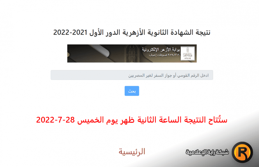 نتيجة الشهادة الثانوية الأزهرية 2022 في مصر وفلسطين ستكون متاحة لكم متابعينا من خلال منصة شبكة راية الإعلامية حيث نحرص على توفيرها لكم مباشرة فور صدورها ووصولها من المصدر.