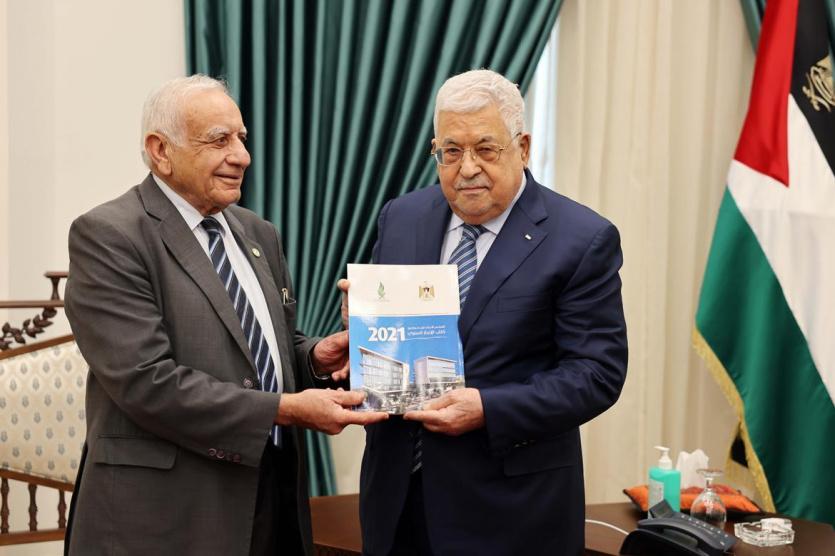 تسلم رئيس دولة فلسطين محمود عباس، التقرير السنوي لعام 2021 للمجلس الأعلى للإبداع والتميز، وذلك خلال استقباله ظهر اليوم الخميس، بمقر الرئاسة في مدينة رام الله، رئيس المجلس عدنان سمارة.