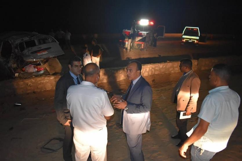 كما كلف اللواء أسامة القاضي، محافظ المنيا، نائبه، محمد أبو زيد، بمتابعة الحالة العامة للمصابين نتيجة الحادث، حيث انتقل الأخير إلى موقع الحادث لمتابعة التفاصيل، والتعرف على الأسباب الأولية للحادث والوقوف على أعمال نقل المصابين، واتضح أنه نتيجة انفجار الإطار الخلفي للسيارة والتي كانت تقل 27 راكبا منهم 13 طفلً مع ذويهم.