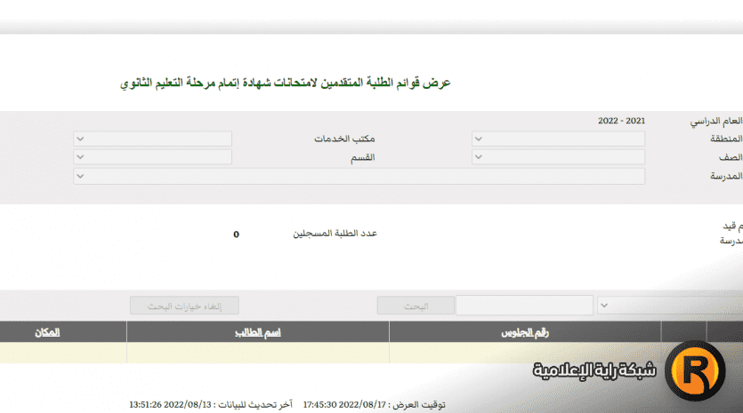 ويمكن الاستعلام عن رقم جلوس الشهادة الثانوية للطلبة في ليبيا عبر الدخول على الرابط المرفق في الأسفل، ثم تظهر قائم الطلبة المتقدمين لامتحانات شهادة إتمام مرحلة التعليم الثانوي، وفي البداية العام الدراسي 2021-2022.