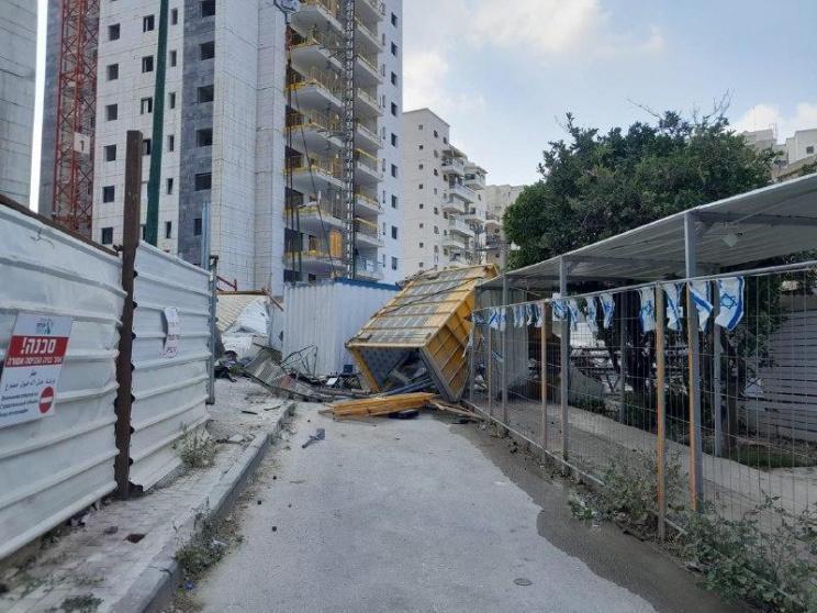 ويدور الحديث عن سقوط حاوية كبيرة على عمال في المكان.
