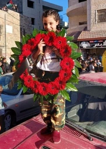 وظهرت ابنة الشهيدة الطفلة سلاف (6 سنوات)، وهي في انتظار وصول جثمان والدتها التي أعدمها الاحتلال على حاجز حزما شمال شرق القدس واحتجز جثمانها لمدة 14شهرا.
