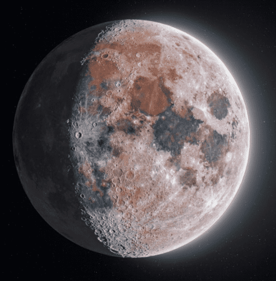 وعلى الرغم من أن الألوان قد تبدو خاطئة، إلا أنها من الناحية الفنية هي الألوان الحقيقية للقمر، إلا أن أعيننا ليست حساسة بما يكفي لرؤيتها، ولذا أعطى مكارثي الصورة دفعة تشبع لإبراز الألوان بكل مجدها.