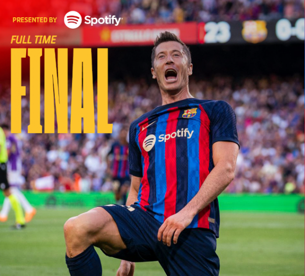 وسجل رباعية برشلونة، ليفاندوفسكي (هدفين) في الدقيقتين 24 و65، وبيدري (43)، وسيرجي روبرتو (90+2).
