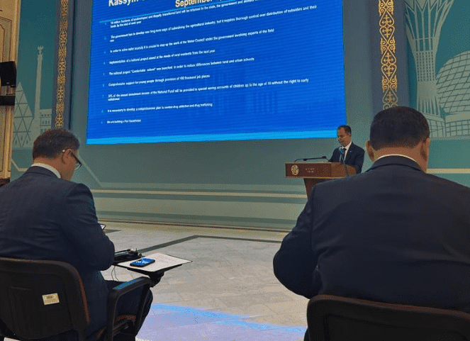 جاء ذلك خلال الكلمة التي ألقاها السفير أبو زيد باسم السلك الدبلوماسي العام لدى كازاخستان تعقيباً على خطاب الرئيس الكازاخستاني، الموجه للشعب الكازاخستاني بعنوان "دولة عادلة، أمة واحدة، مجتمع مزدهر" في الجلسة العامة لمجلسي "الشيوخ والنواب" في برلمان جمهورية كازاخستان، مؤكداً على ترحيب الجميع ودعمهم للمبادرات التي طرحها الرئيس توكاييف في هذا الصدد.