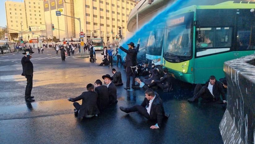 من جانبها، قالت الشرطة الإسرائيلية في بيان، إنها "فضّت احتجاجات غير قانونية نظمها يهود متديّنون، باستخدام أدوات التفريق".