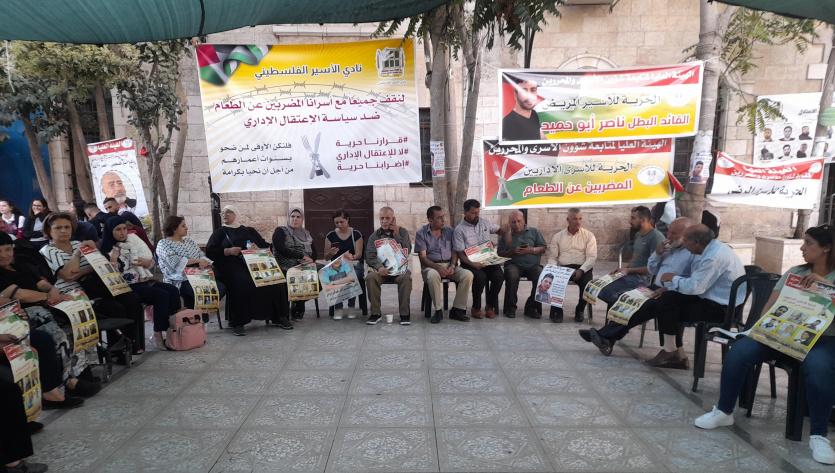 نظمت اللجنة الوطنية لإسناد إضراب المعتقلين الإداريين عن الطعام والأسرى المرضى، مساء اليوم السبت، وقفة اسناد في خيمة الاعتصام.