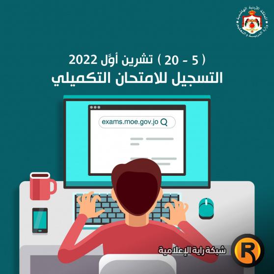 ونشرت الوزارة في منشور عبر صفحتها الرسمية بموقع فيسبوك، رابط التسجيل للامتحان التكميلي 2022 توجيهي الأردن، موضحة أنه يتواصل تسجيل الدورة التكميلية لامتحان شهادة الدراسة الثانوية خلال الفترة من 5 - 20 شهر تشرين أول/أكتوبر الحالي.