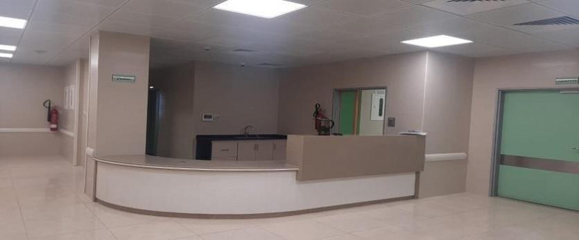 ويحتوي هذا الطابق على منامات للمرضى عدد 4 وبقدرة استيعابية 12 سرير، إضافة لوحدة التمريض وغرف أطباء وغرف تعقيم، وكذلك وحدة (ٍScrub Unit) لغسل أيدي الأطباء والممرضين والتعقيم قبل المباشرة بالجراحة، وغرفتي ولادة ومخاض (Delivery Rooms)، غرفة عمليات قيصرية وغرفة النقاهة (Recovery Room)، والتمديدات الضرورية من الكهرباء بالإضافة إلى تركيب مولد كهرباء احتياط بقدرة 650 KVA، والميكانيك والتكييف والغازات الطبية الضرورية وبمواصفات هندسية وتشغيلية مناسبة للمستشفى.