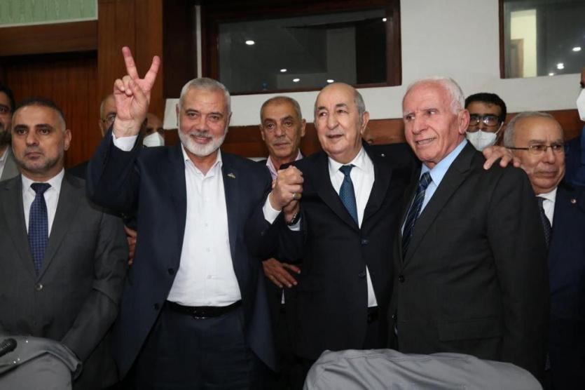 وأضاف:" الرئيس الجزائري عبد المجيد تبون حضر شخصيًا لمباركة هذه الحوارات والخطوات الجريئة، ووجه كل الشكر لشعبنا الفلسطيني الصامد على أرضه ولكل قوى المقاومة التي دفعت باتجاه انجاز المصالحة الفلسطينيّة".
