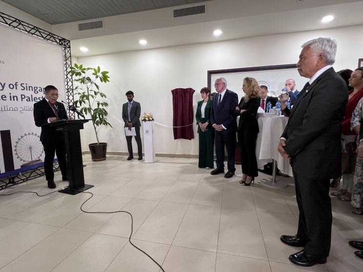 ونظم حفل الافتتاح في مدينة رام الله، بحضور وزير الخارجية والمغتربين رياض المالكي، ووزير الدولة للشؤون الخارجية لجمهورية سنغافورة محمد مالكي بن عثمان، وسفير الجمهورية غير المقيم هوزاي ديابي، ومديرة مكتب تمثيل سنغافورة لدى فلسطين شيرين الشلة.