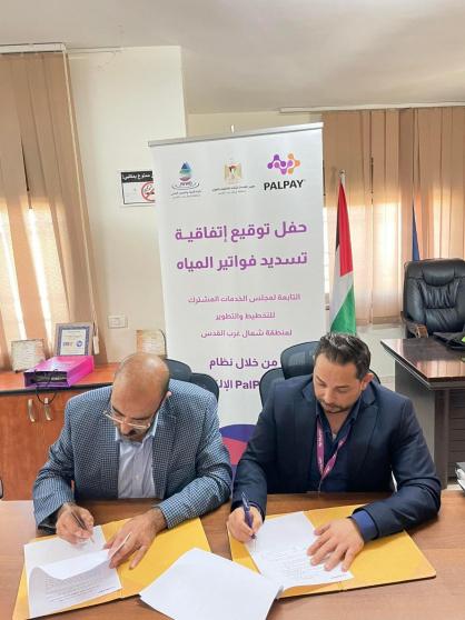 وقع مجلس الخدمات المشترك للتخطيط والتطوير لمنطقة شمال غرب القدس- دائرة المياه والصرف الصحي وشركة PalPay الرائدة في خدمات الدفع الإلكتروني الحديثة في فلسطين، اتفاقية تعاون تتيح للمشتركين بخدمة المياه في منطقة شمال غرب القدس، إمكانية تسديد فواتير المياه عبر قنوات الدفع الإلكتروني التي توفرها الشركة.