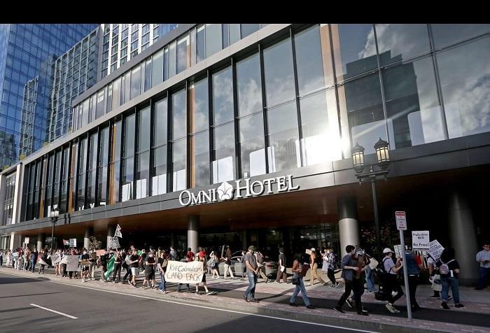 تظاهر العشرات من مناصري القضية الفلسطينية، اليوم الأحد، أمام مقر انعقاد المؤتمر الوطني للصندوق القومي اليهودي في فندق أومني بمدينة بوسطن في ولاية ماساشوتس الأميركية، مطالبين بإغلاق مؤسسات أميركية تمول الاستيطان.