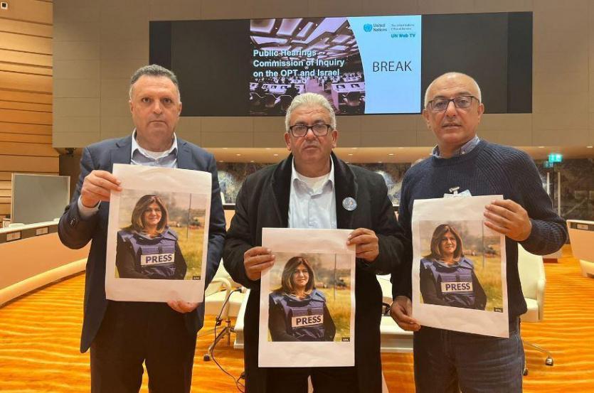 أدلى صحفيون فلسطينيون، الخميس، بشهادتهم حول جريمة إعدام الزميلة الصحفية شيرين أبو عاقلة، والانتهاكات الإسرائيلية بحق الصحفيين، وذلك أمام لجنة تحقيق أممية.