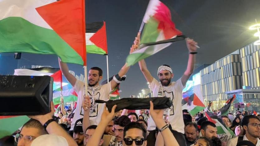 تشهد تجمعات الجماهير في قطر، تضامنًا واسعا مع الشعب الفلسطيني وقضيته العادلة، قبل ساعات من انطلاق بطولة كأس العالم لكرة القدم 2022 على الملاعب القطرية.