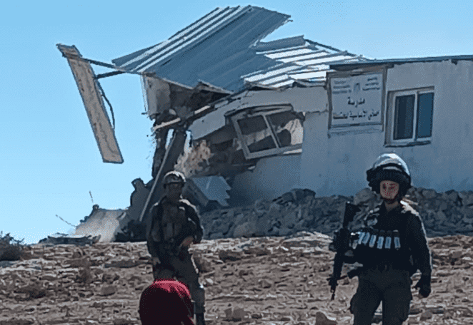هدمت قوات الاحتلال الإسرائيلي، اليوم الأربعاء، مدرسة إصفي الأساسية المختلطة، بمسافر يطا، جنوب الخليل.