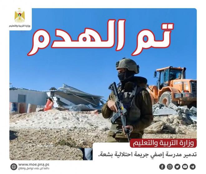 وزارة التربية: تدمير مدرسة إصفي جريمة احتلالية بشعة