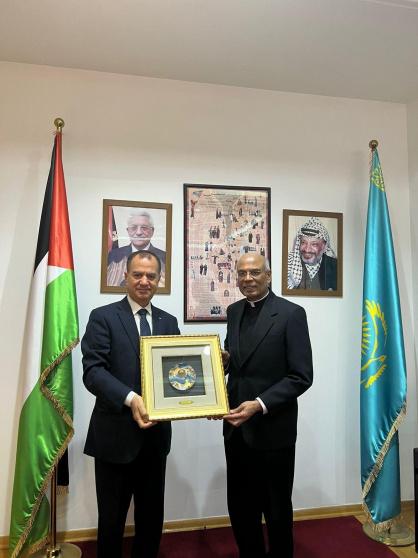 كرم السفير الفلسطيني لدى كازاخستان - عميد السلك الدبلوماسي العام، د. منتصر أبو زيد، سفير الفاتيكان، فرانسيس أسيزي شوليكات، بمناسبة انتهاء مهمته في أستانا، وانتقاله الى البوسنة والجبل الأسود.