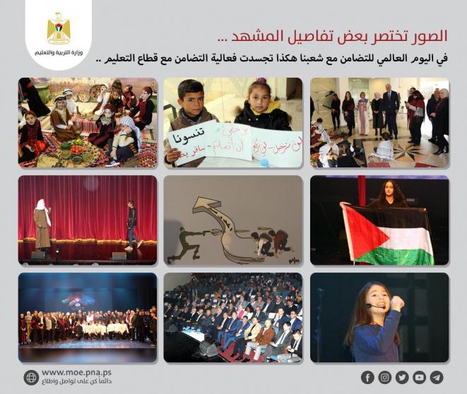 أحيت وزارة التربية والتعليم، اليوم الثلاثاء، فعاليات اليوم العالمي للتضامن مع الشعب الفلسطيني، "التضامن مع قطاع التعليم"، بحضور رسمي ودولي وتربوي وشعبي.
