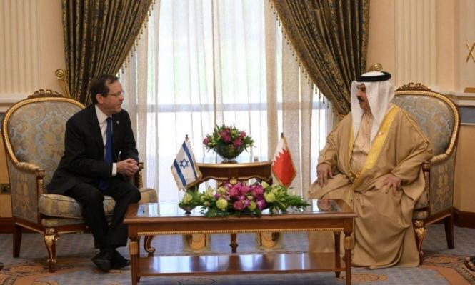 عقد ملك البحرين، حمد بن عيسى آل خليفة، والرئيس الإسرائيلي، يتسحاق هرتسوغ، الأحد، جلسة مباحثات بين الجانبين، في العاصمة البحرينية، على هامش أول زيارة من نوعها لرئيس إسرائيلي، ناقشا خلالها "مواصلة جهود حماية أمن المنطقة في ظل التحديات الحالية"، وتعزيز "الشراكة الأمنية والاقتصادية" بين تل أبيب والمنامة.